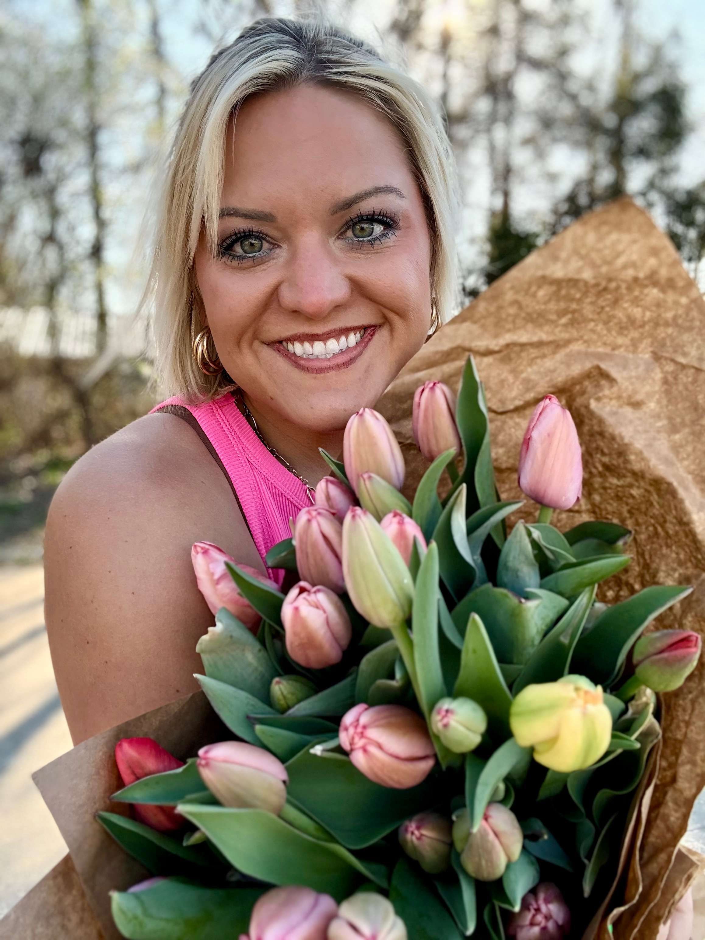 Hello! My name is Leslie Turner. I own Backyard Blooms! This is my third year in business. Backyard Blooms specializes in seasonal, locally grown cut flowers. I am a teacher in a rural area in Western Kentucky. I have been teaching Special Education for 10 years now. I love helping my students to learn and reach their full potential but also to be confident, love themselves, and find happiness in their surroundings. Just as I have a love for helping my students learn and grow, I also find the same happiness in growing flowers to their fullest potential to share my happiness with those around me. I have always enjoyed flowers. I enjoy the beauty in each and every bloom but most importantly, the peace that they bring. Working with flowers and having my hands in the dirt is my therapy. There is something so gratifying and satisfying to be able to start the process from a tiny seed and nurture it to become something beautiful. I began this business because I wanted to share my love of flowers with others. I want to help make people happy by being able to provide bouquets and blooms for special events, occasions, or even the “just because I am thinking about you” gifts. I start many of my flowers from seed and grow them in my garden. In the spring, I grow a variety of beautiful tulips and other cut flowers. In the summer, I grow flowers such as lisianthus, asters, zinnias, celosia, fillers, greenery, eucalyptus, and many more. I then cut and process each stem and design a variety of unique bouquets for others to enjoy.
